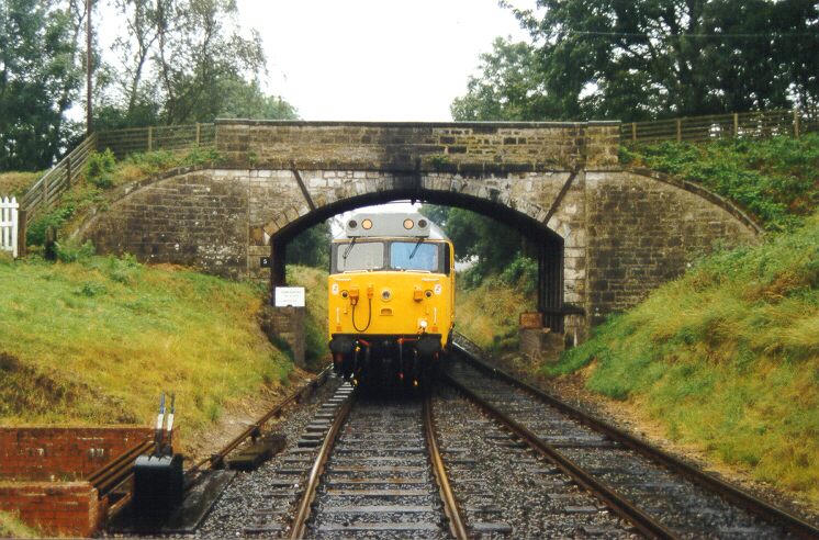 Preserved Class 50. 50021 'Rodney' uncouples from it's train after arrival at Bo'Ness, on the Bo'Ness & Kinneil Railway with the 11:03 Birkhill - Bo'Ness service during the diesel gala weekend on Sun 6th Sept 1998.
