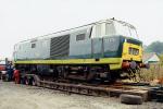 Class 35 'Hymek'. Immediately after hauling it's last train on the Bo'Ness & Kinneil Railway during the diesel gala weekend event on the 4th-6th Sept 1998, D7076 was driven up onto the waiting road transporter for its journey back to the East Lancs railway. In this view we see D7076 being prepared to be driven up onto the low-loader at Bo'Ness on Sun 6th Sept 1998.