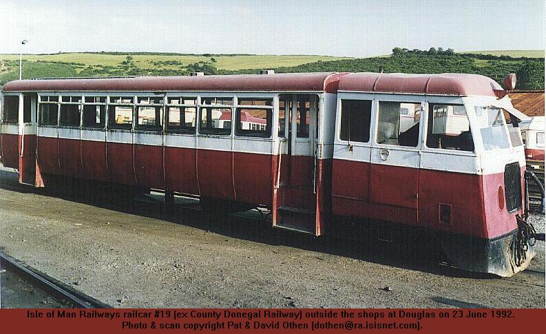 Isle of Man Railways railcar #19 (ex Donegal Counties Railway) outside the Douglas shops on
