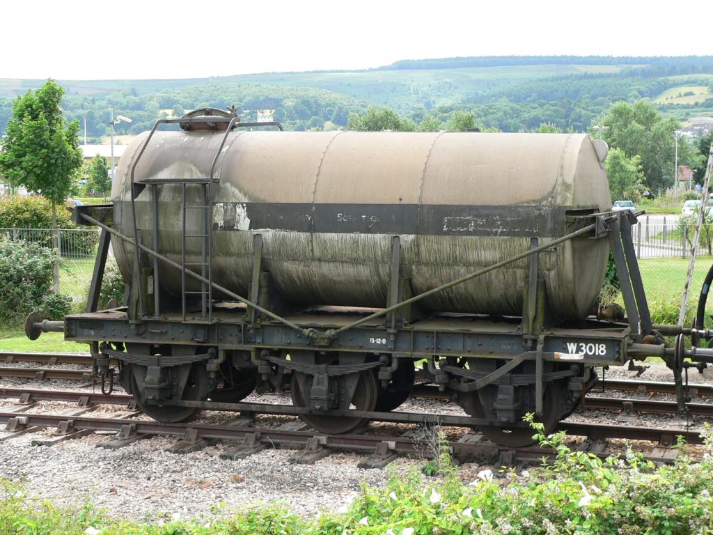 GWR 6 wheel Milk Tank no. W 3018, built by GWR at Swindon in 1946 to Diagram O57; photographed in sidings at the eastern end of Minehead station on the West Somerset Railway.