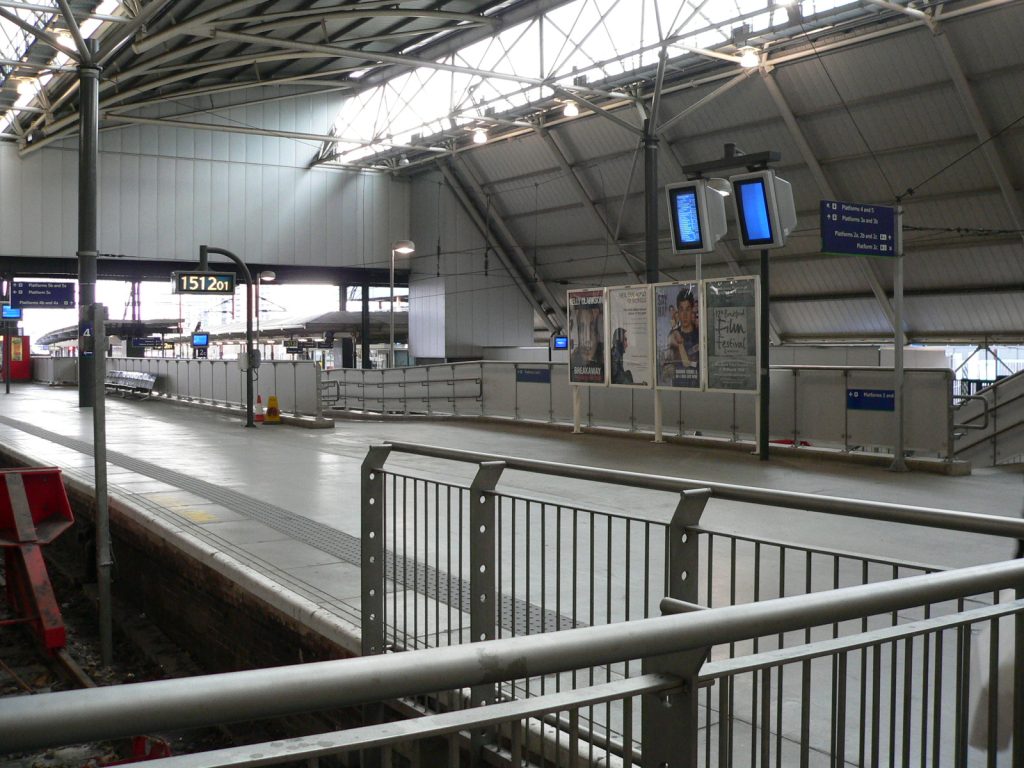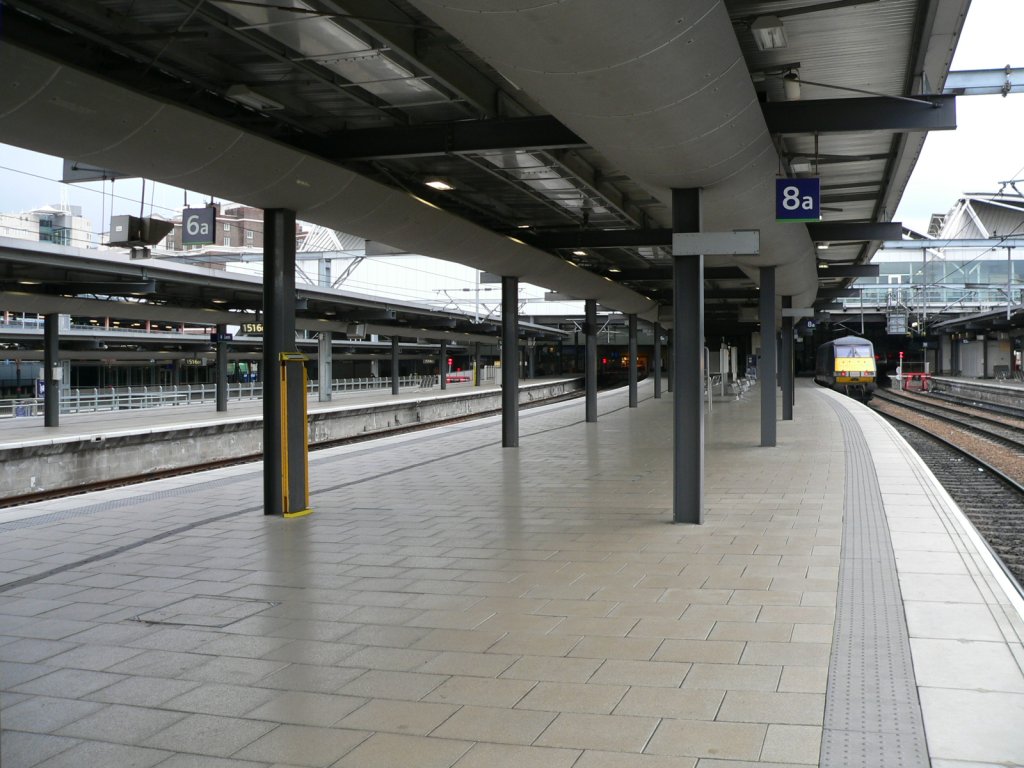 The western end of Leeds station, looking at the through platforms from the end of platform 7.