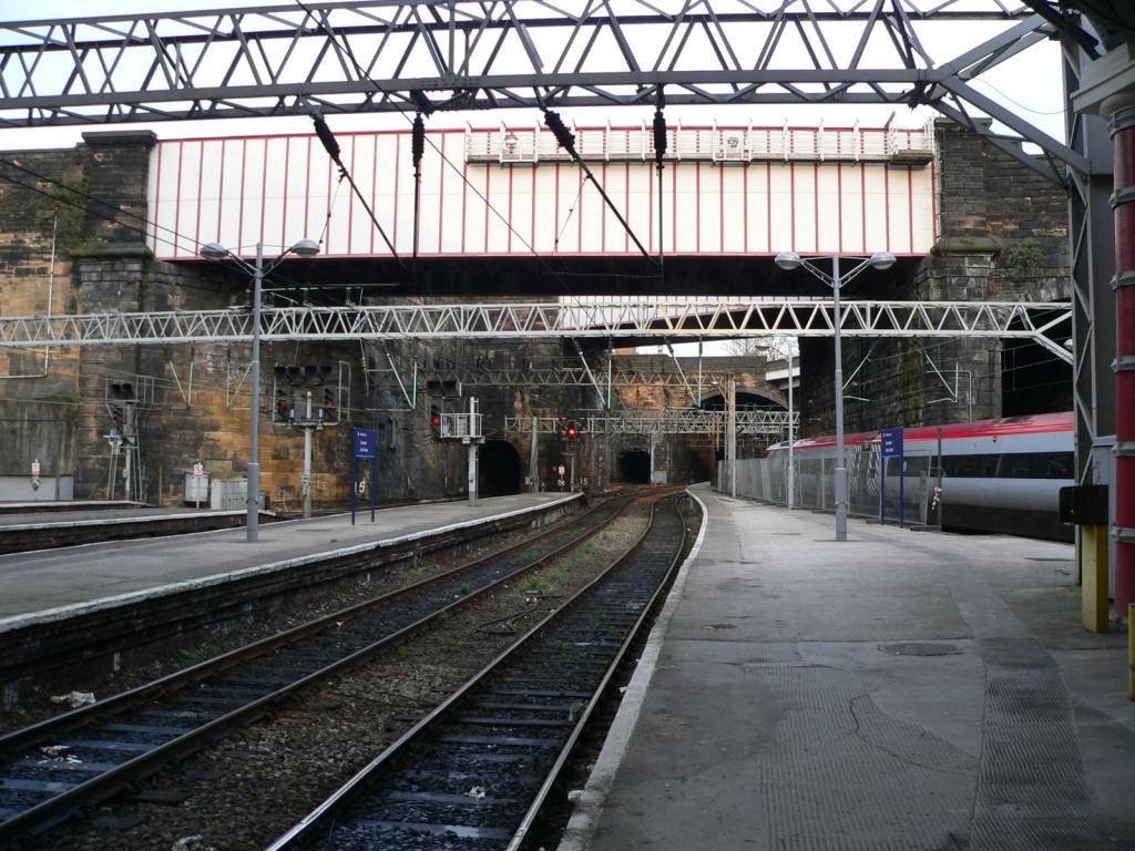 Looking east from midway along platform 6 at Liverpool Lime Street railway station.