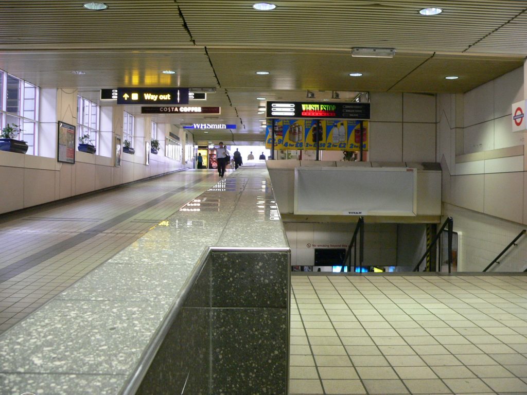 The passage leading to the London Underground ticket hall from the suburban platforms 8-11 at Euston station.