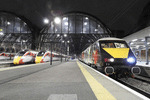 Here is a head-on view of London King's Cross, with various trains being stationed there. From this