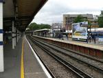 New Cross station in south London, viewed from the bridge that carries New Cross Road over the railway at the southern end of the station.