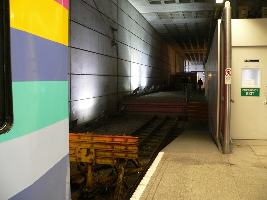 The buffers at the end of Platform 2 at Stansted Airport railway station.