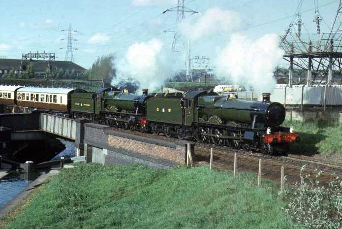 UK Ex-GWR 4-6-0s 5900 Hinderton Hall and 6998 Burton Agnes Hall hurry their