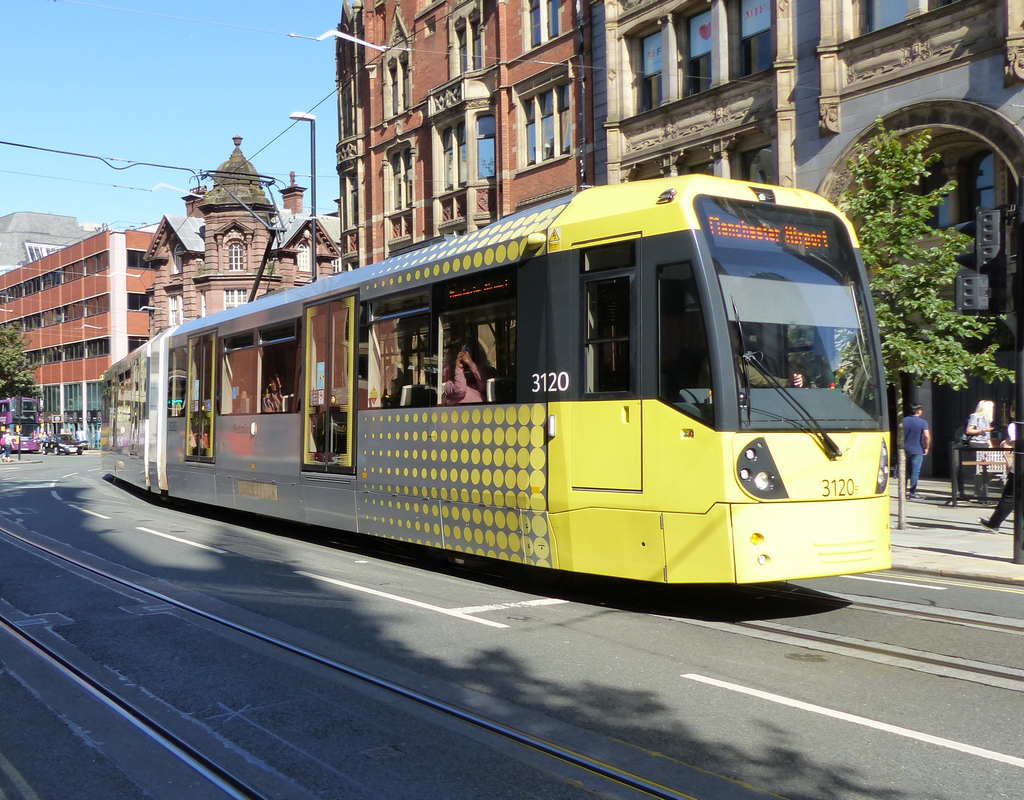 | Manchester tram number 3100 M5000 at Manchester on 24/08/19. Photo johnturner16@yahoo.co.uk |