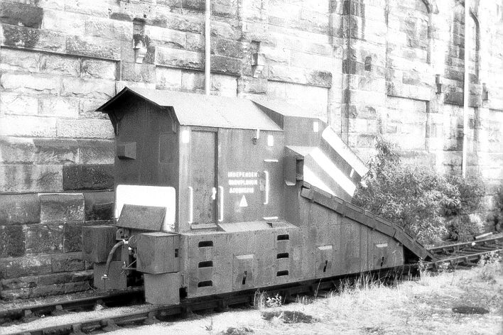 Plasser & Theurer RM74 Ballast Cleaner. 76300 stands at Slateford Civil Engineers depot on Saturday 3rd Oct 1998.