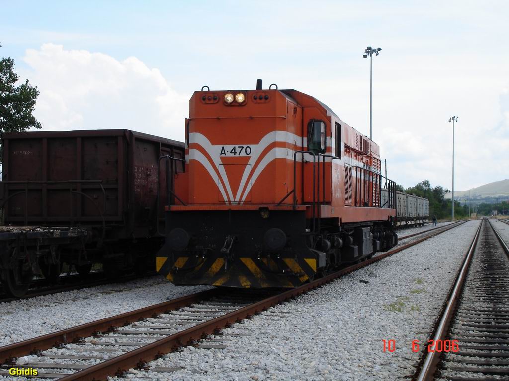 Amyntaio station western Macedonia, diesel Locomotive A-470 (MLW MX627) 10/6/2006.