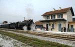 OSE steam engine Lb-964, an "Austerity" of the British War Department, with two ex-Orient Express (CIWL) cars, one sleeper and one restaurant, won an excursion train at Livera station, 26 March 2005. On the rear of the train, Alco built Diesel Electric A-326 is used for assistance.