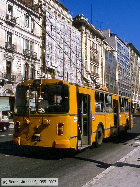 O-Bus Athen - 2007 Oberleitungsbus (Trolleybus / Filobus) 2007 aus der Serie 2001 – 2015 (ZIU, Zweiachser, Baujahr 1977) am 26. August 1985.
