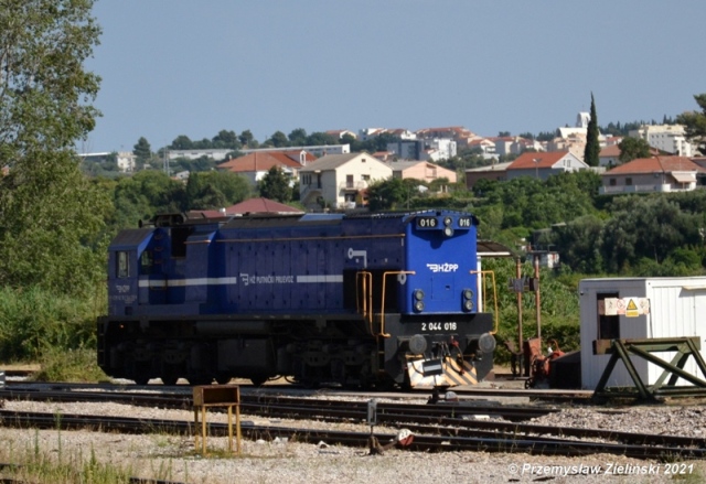 A diesel locomotive with number 2044 016 of HZ (Hrvatske Zeljeznice / Croatian railways) at railway station Perkovic with night train "Dalmacija" with number 1782 from Osijek to Split. A video about departuring the train from railway station Perkovic, you can see here: