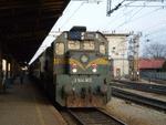 HŽ diesel locomotive 2044-007 awaits to take over a freight train for Koprivnica. Varazdin's railway station. 07 mar 2005.
