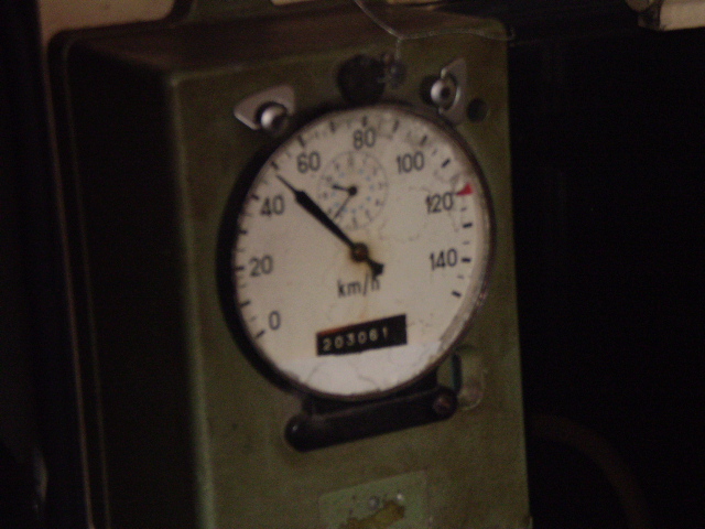 Cab and command desk in Hz Diesel electric locomotive 2062 105.