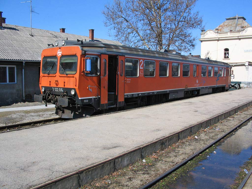 H DMU 7122-016 awaits departure from Varazdin (14:21) to Ivanec and Golubovec as the train no. 3506. 13 mar 2005.