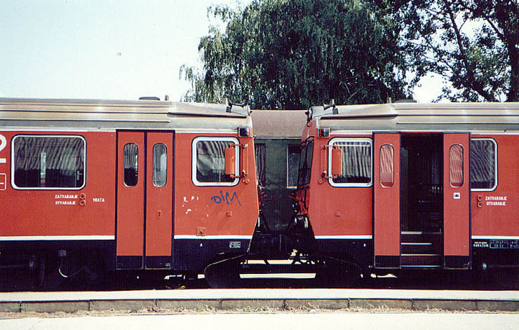 HZ DMU 7122.012 ex SJ (Sweden) and - on the right - Diesel 2062.042 at Lupoglav on the Pula-line, August 2002