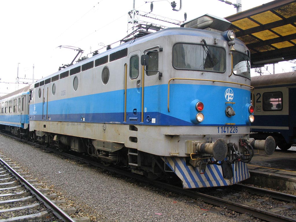 HŽ electric locomotive 1141-226 (subclass 200) at Zagreb Glavni Kolodvor (Zagreb Main Station) - diagonal perspective. 13 apr 2005.