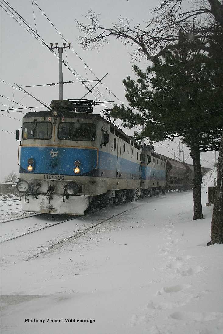 1141 209 in the snow at Moravice with a freight towards Ogulin. 18.1.13