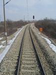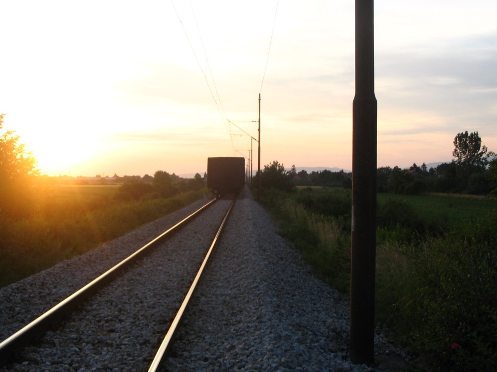The track at the exit from Dugo Selo station (21 km eastbound from Zagreb Main Railway Station). There are two tracks from Zagreb to Dugo Selo, which then separate, making one-track line for Koprivnica and Hungary, and one-track line for Novska, which is seen at the picture. From Novska on the mainline continues again with two tracks towards Nova Kapela - Slavonski Brod - Vrpolje - Vinkovci - Tovarnik (Yugoslav border). All the lines mentioned above are completely electrified at 25 kV ~ 50 Hz.