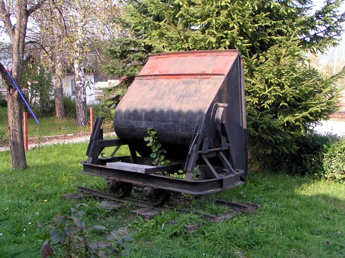 Wagon of an unknown narrow gauge mine railway, exhibited in front of the Ogulin diesel locomotives depot, 10th October 2006