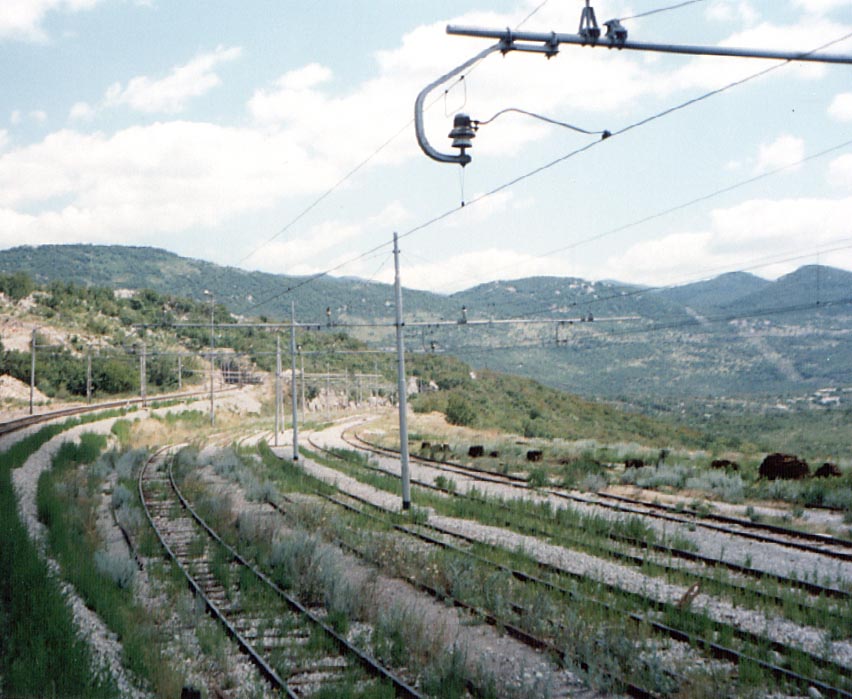 The picture shows Zapresic station. It is a little town in the north-west of Zagreb situated on the main line Zagreb - Dobova - Ljubljana. Right after Zapresic station the main line diverges into two lines - one for Ljubljana (two tracks, 25 kV 50 Hz) and the other to Varazdin (one track, no electrification).