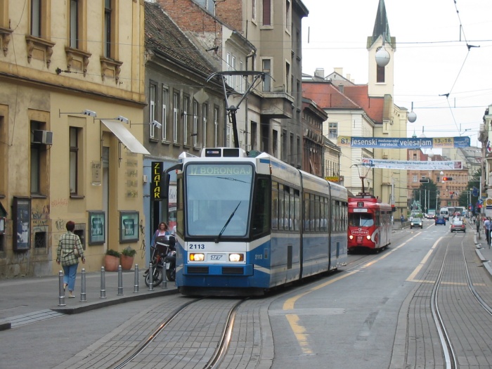 Končar articulated tram at stop Frankopanska. A 2113-as Končar csuklós villamos a Frankopanska megállónál. Photo: Zoltán Ádám Németh, nza@freemail.hu |