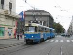 A tram "Tatra T4YU" on the streets in Zagreb.