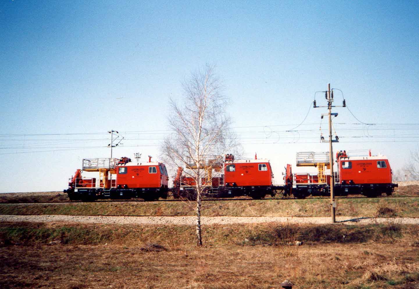 On 24th March, three Plasser Theurer Motor Tower Cars MTW 10.217 vehicles came to the Marchaling Yard in Zagreb (HZ 9116 204, 205 and 206). Those vehicles are specially adapted to the requirements of the overhead catenary system and able to transport material and crew.