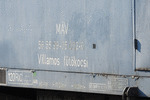 A boogies of generator car of MAV (Magyar Allam Vasutak / Hungarian Railways) with number 56 55 99 05 002 - 0 at central railway station Sofia in composition of an attraction train.