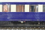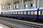 A sleeping car of MAV (Magyar Allam Vasutak / Hungarian Railways) type "WL" with number 56 55 70 29 362 - 3 at central railway station Sofia in composition of an attraction train.
