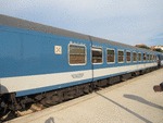 A restaurant car ot MAV ( Magyar Allam Vasutak / Hungarian Railways) with number 56 55 88 81 029 - 3, type "WRm" at railway station Split in composition of International train "Adria" with number B 1205 to Budapest Keleti. A video movie about departuring the train , you can see here: