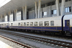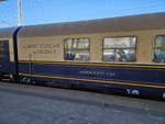 This month in Bulgaria there is a carry out an attraction trip of group hungarian tourists with retro style sleeping cars , restaurants , generator and salon car.The compositon includes carriages of type "Nostalgia" train and onto the destination plates there are an inscriptions "Golden Eagle Danube Express".On these pictures you can see some of different types of cars.