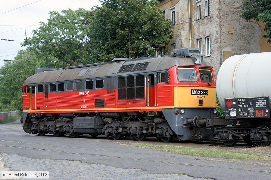MAV - M62 333 Lok M62 333 mit einem Güterzug aus Kesselwagen beim Bahnhof Budapest Ferencváros am 20. September 2008.