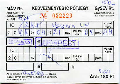 MAV International ticket Szob-Sturovo 16.09.2006