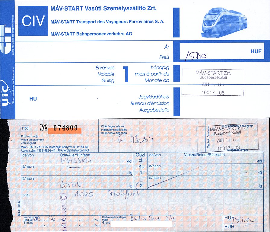 MAV ticket Linz-Passau Vorteilscard discount 1.11.2011 |