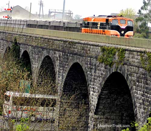 071 class loco on Tara Mines run on Navan Drogheda viaduct in Navan, Co Meath, Ireland.