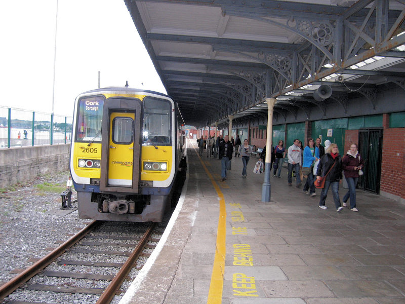 IE - Ireland A diesel trainset of class 2600 (with motor car 2605 leading) stands in one of the bay platforms in Cork, awaiting passengers for the service to Cobh. Cork, 07-09-2008 Digital photo by Marco van Uden |