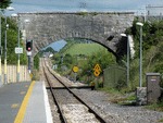 Inside the IE/NIR Enterprise train first class seating in Belfast, heading south to Dublin Connolly Station. This train is pulled by Iarnrod Eireann diesel locomotives. This is an unknown station south of Drogheda in the Republic of Ireland. Taken 29 July 2004. © 2004, 2006 Josh Hanz (josh_hanz@hotmail.com) |