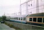 L'IC "TIRRENO" Ventimiglia - Roma termini delle FS mentre transita davanti alla Centrale ENEL di Vado Ligure (Estate 1999)