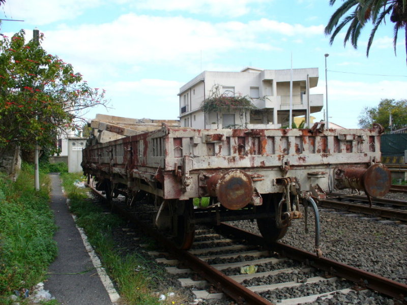 Un carrello di un carro Rgs alla stazione di Soverato.