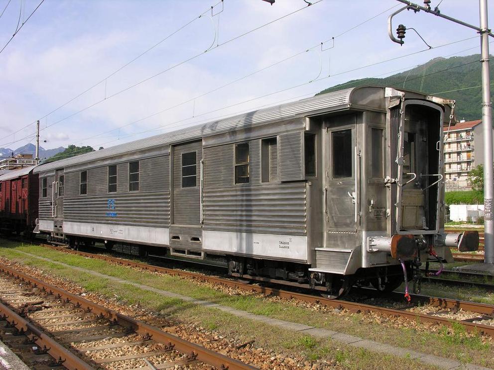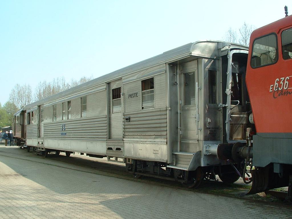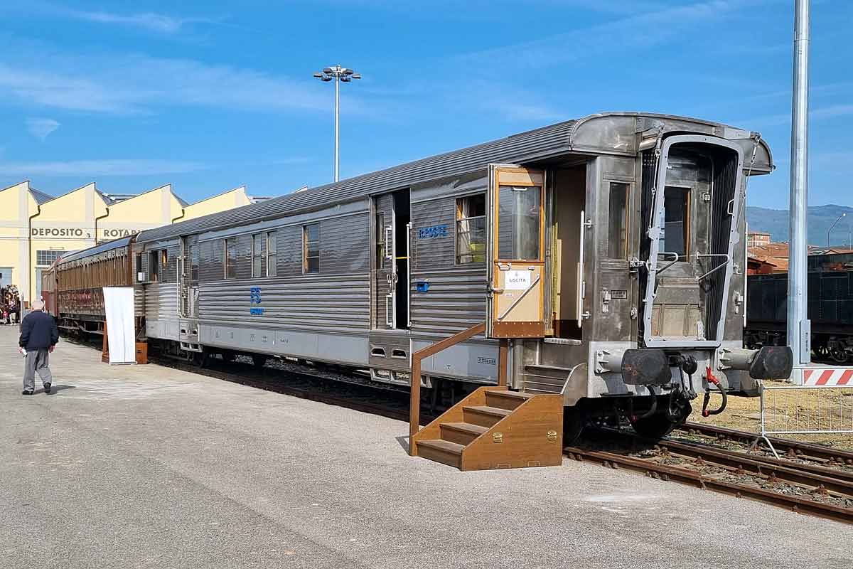 Inox Mail coach Duz-93000, one of the only two built, exposed outside at Pistoia.