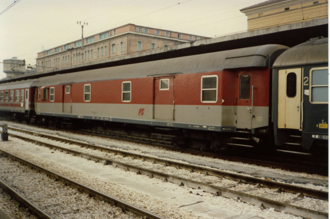 FS baggage-mail of the series 50 83 91-78, obtained from the series 50 83 91-88 (built in 1966-67) by elimination of body butt straps, replacement of former single-glass windows with new Klein-type ones, elimination of steam heating and other.