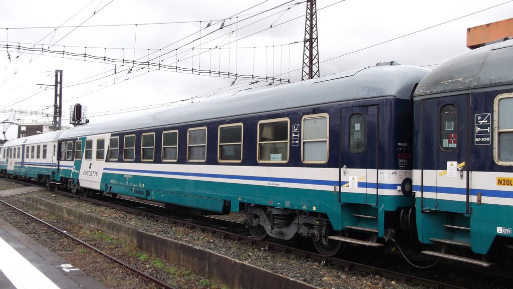 Voiture type UIC X couccette de Trenitalia à Lourdes.20/04/2012.