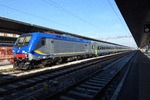 An electric locomotive of FS (Ferrovie dello Stato / Italian Railways) with number 464.245 at railway station Venezia Santa Lucia with RV3884 to Trieste Centrale.