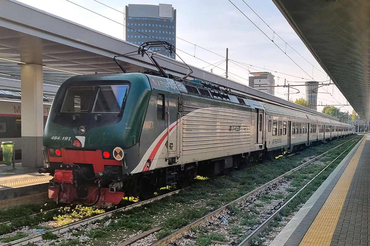 TreNord 464 196 stands at Milano Centrale on 1 July 2013.
