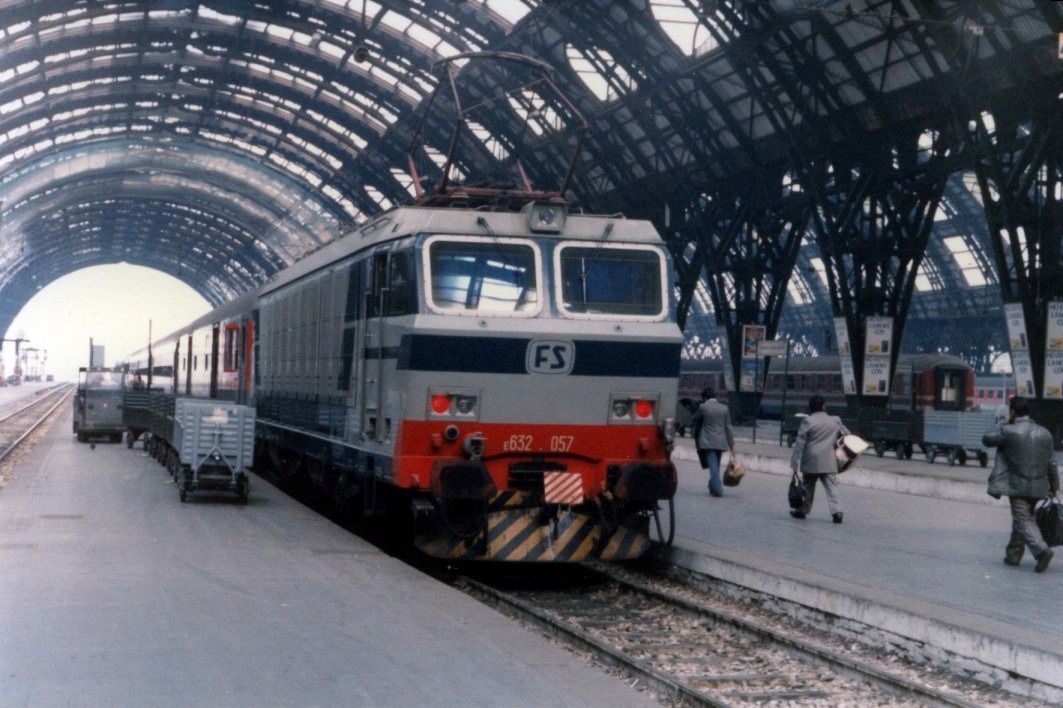 FS E632 057 at Milano Centrale in 1987, probably with a train to Ancona.
