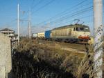Loco FS Trenitalia Cargo E652-161 passing Vignale in direction of Novara, with Hupac Shuttle from Rotterdam nearly at the end of his journey along Corridor 24; 19.11.2008