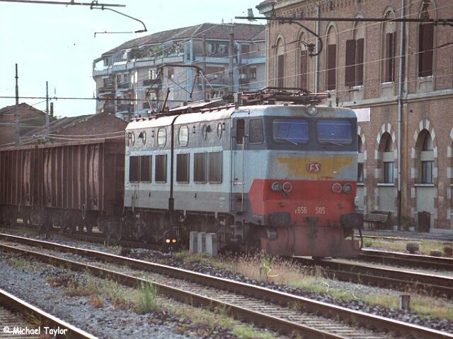 FS Class E656 Electric Locomotive. E656.505 enters Treviso station with an eastbound freight on Saturday afternoon May 11th, 2002.