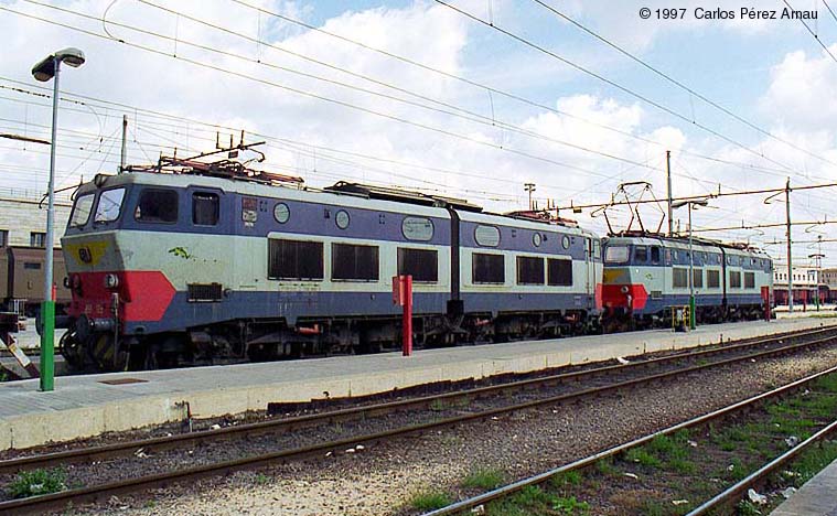 Dos locomotoras electricas 656. Two electric locomotives of FS class 656. Roma - 10/1997
